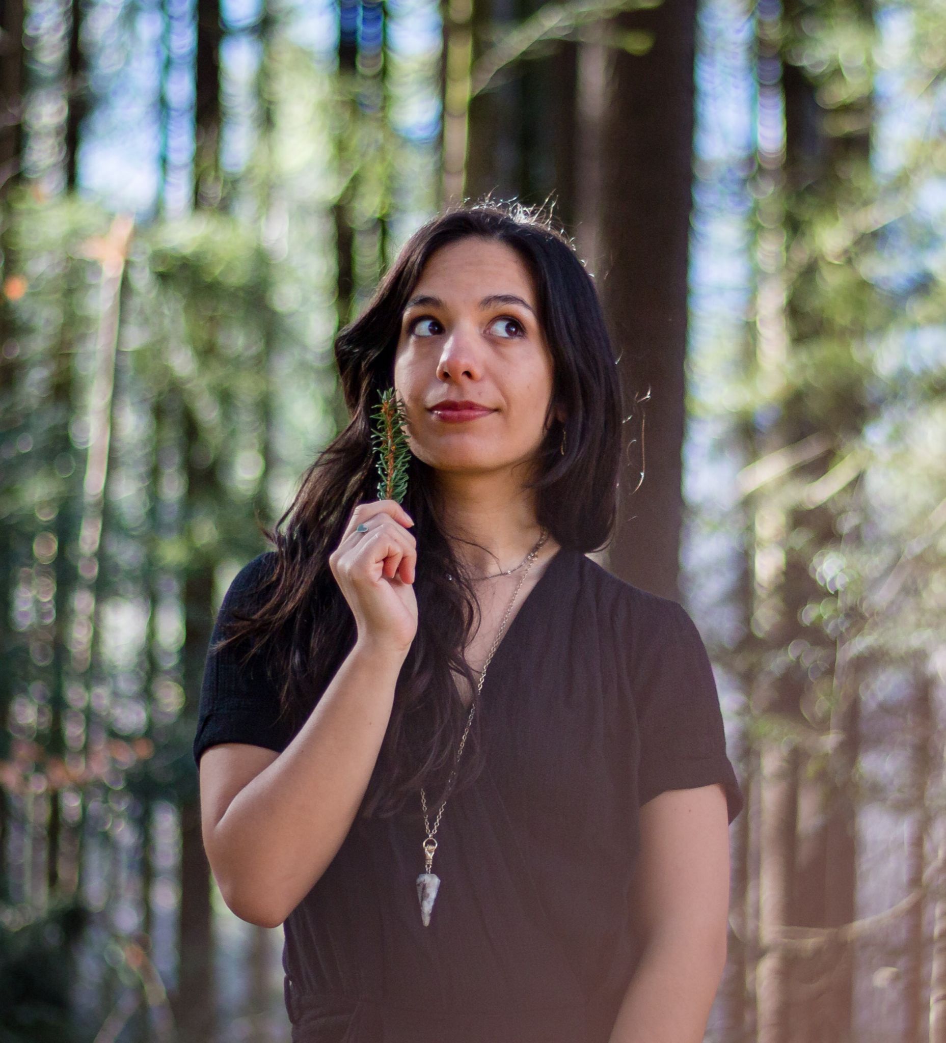 Par ses racines entre forêts et montagnes, elle s'ancre dans le territoire vivant et puissant de la terre sur laquelle elle marche, urbaine comme sauvage. Son rôle ici est d'excaver nos sagesses oubliées en se reliant aux empreintes énergétiques ancestrales.